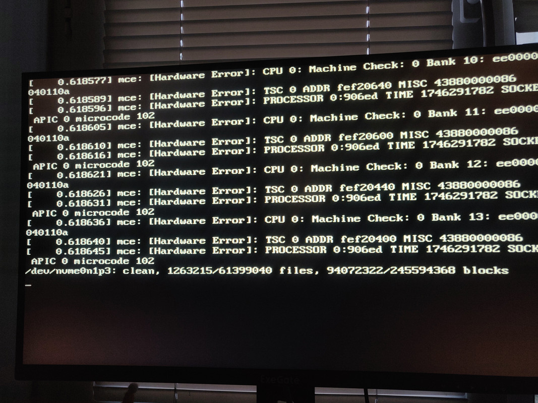 P.s. one thing i noticed is that before signal stops, after showing harware errors as in #10, there's this text below, which also appears with nomodeset, at least something changed:
