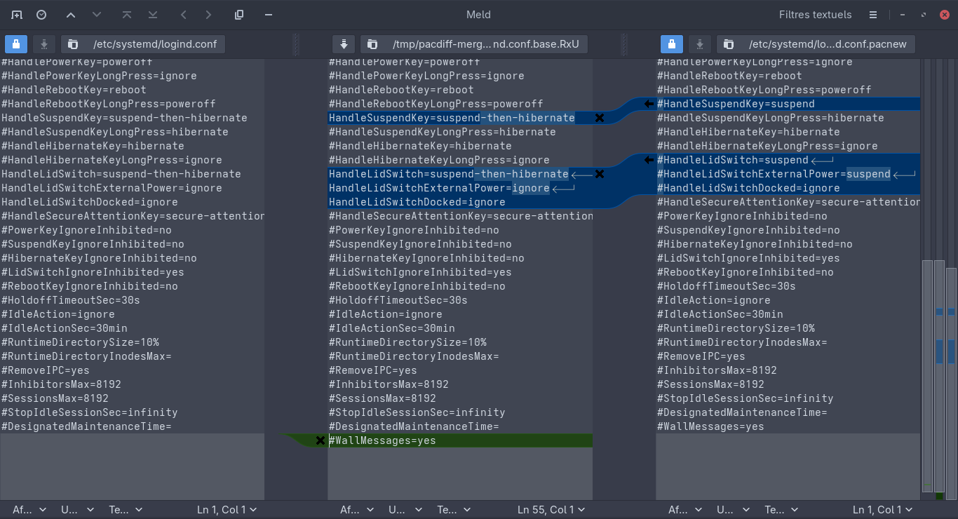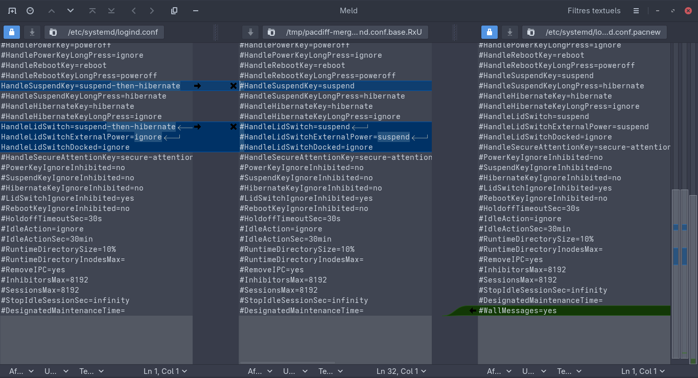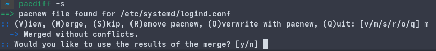 => pacnew file found for /etc/systemd/logind.conf