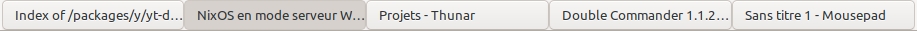 I then shutdown before going to sleep, then booted again this morning. After I logged in my XFCE session, I saw that the opened windows buttons don’t show icons anymore (except when two or more are grouped in one):