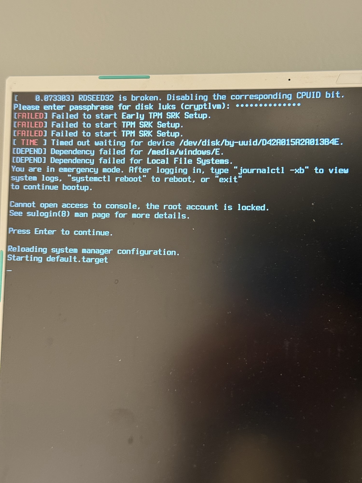 Currently, I am trying to fix the TPM auto-unlock and place the BitLocker Recovery Key for the E: drive within my Linux LUKS-encrypted partition to achieve automatic unlocking of the E: drive.