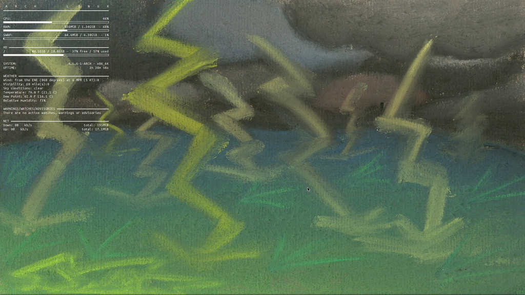 running conkywx....showing my local weather conditions & forecast + earthquake data worldwide + some sysem data