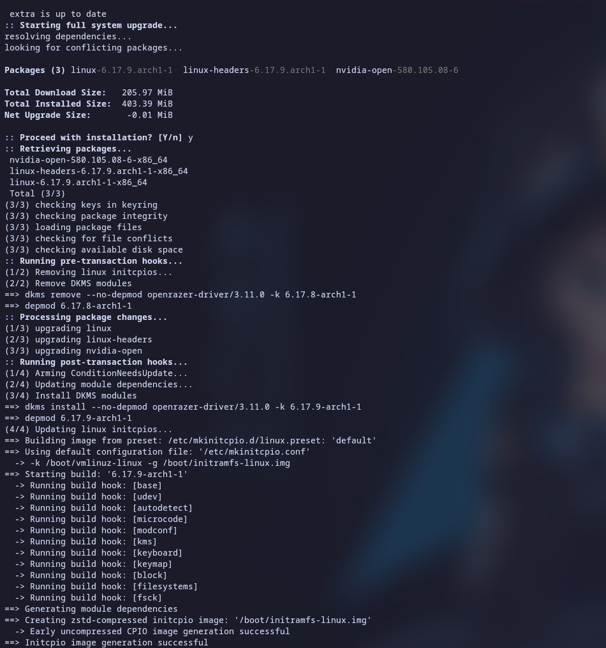 https://github.com/CachyOS/cachyos-hook … t-required - "recommended" because of the rather exhaustive list in https://github.com/CachyOS/cachyos-hook … uired.hook (for ~half of those you don't even have to reboot to apply the update, why you'd reboot or do anything after the initrfamfs buildsystem updated is probably a secret)