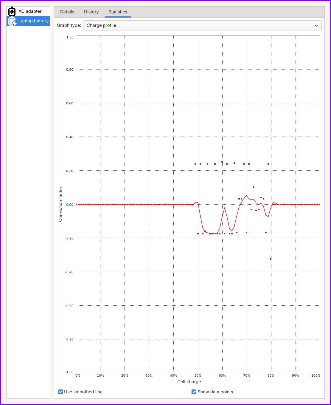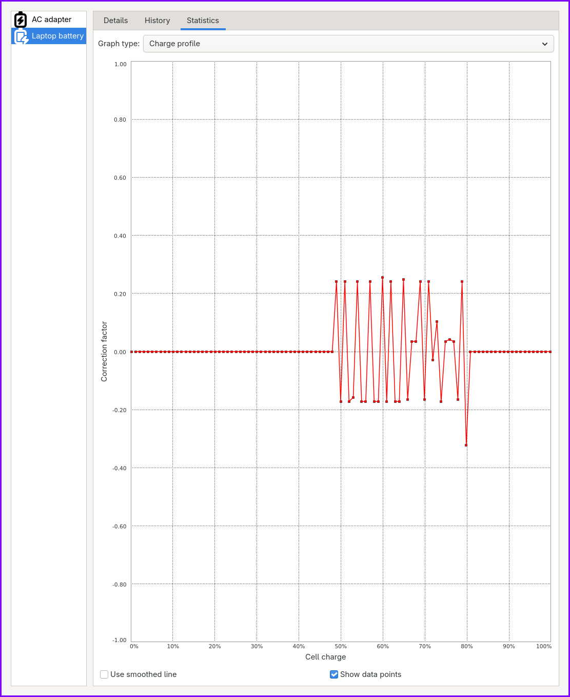 The corrections don't really make sense for my battery tho - probably because my charging behavior is quite weird on linux. https://paste.c-net.org/ElevateUnderdog https://paste.c-net.org/NervesEmotions